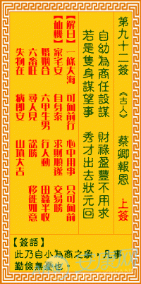 总的观音灵签第九十二签无疑是一部浓缩了人生智慧的微缩百科全书。其同过丰富多变的意象符号——“六甲生男”、 “讼胜”、“病即安”等——为我们提供了一个观察和理解生活复杂性的独特视角。同过上述深度解读我们了解到生活的各个方面皆可为我们的决策提供参考依据。只是我们在利用这些传统智慧资源的一边是否也应当反思现代人在面对命运抉择时的浮躁心态呢?毕竟无论签文如何吉利,到头来决定人生走向的依然是我们面对生活的态度以及脚踏实地的行动力,地道。。